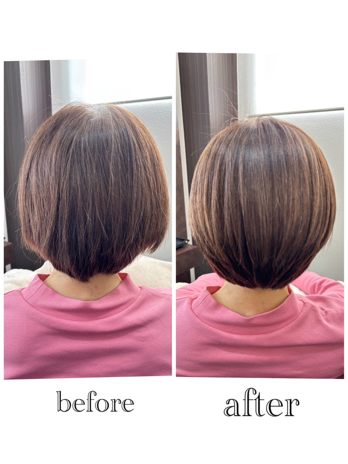後ろ姿のシルエットも整い、髪全体のツヤ感もアップしました^_^